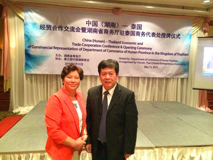 5月12日下午,湖南商務(wù)廳和泰國商務(wù)部共同主辦的“中國(湖南)— 泰國經(jīng)貿(mào)合作交流會暨湖南省商務(wù)廳駐泰國商務(wù)代表處授牌儀式”在曼谷舉行。會議旨在擴(kuò)大泰國與湖南在投資政策、環(huán)境、產(chǎn)業(yè)方面的溝通交流,為推動雙方企業(yè)優(yōu)勢互補(bǔ)、搭建平臺提供合作機(jī)會,有利于湖南企業(yè)“走出去”赴泰開展投資合作活動。永州市副市長羅雙全攜永州市異蛇科技實(shí)業(yè)有限公司赴泰國出席本次會議。