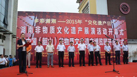 6月13日上午,2015年“文化遺產(chǎn)日”湖南非物質(zhì)文化遺產(chǎn)展演活動(dòng)在韶山拉開(kāi)帷幕。湖南省委常委、宣傳部長(zhǎng)許又聲,副省長(zhǎng)李友志等領(lǐng)導(dǎo)出席了啟動(dòng)儀式。永州市異蛇科技實(shí)業(yè)有限公司總經(jīng)理郭德志作為非物質(zhì)文化遺產(chǎn)傳承人出席了本次會(huì)議。