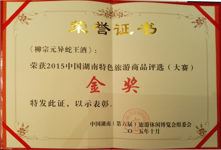 異蛇科技公司憑借優(yōu)質的產品品質在2015年中國湖南特色旅游商品評選(大賽)金獎!