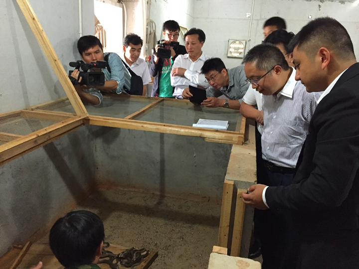 劉進(jìn)能一行參觀蛇類繁養(yǎng)基地