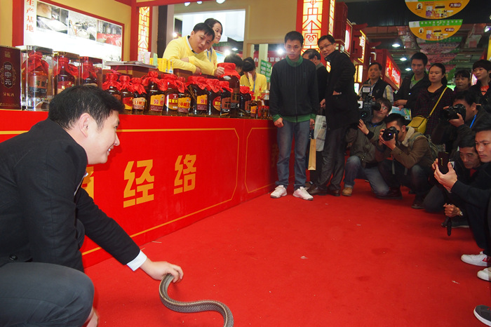18日上午,國家農(nóng)業(yè)部副部長屈玉冬、湖南省副省長何報翔,在湖南省農(nóng)委劉宗林主任的陪同下,巡視異蛇科技展位,在公司展位前,省農(nóng)委劉主任親自向屈部長介紹了公司產(chǎn)品:“譚群英公司的產(chǎn)品我用過,質(zhì)量很好!” 何省長笑著對譚總說:“現(xiàn)場能背得出柳宗元的捕蛇者說文章的朋友,您能不能送一瓶好酒?”譚總笑著說:“ 好!”引來大家爽朗的笑聲。 “我們連續(xù)參加了17屆農(nóng)博會,每年達成協(xié)議都有四十多個。現(xiàn)場銷售額也年年遞增,去年就有30萬元的銷售額,讓我們充分感受到了農(nóng)博會的魅力!惫径麻L譚群英向屈部長一行簡要匯報,公司總經(jīng)理郭德志在一旁補充道:公司的每滴酒都是真材實料,公司秉承品質(zhì)至上、科學(xué)創(chuàng)新的發(fā)展理念,今年成功開放了兩條全自動化生產(chǎn)線、優(yōu)化了灌裝流程、降低了產(chǎn)品成本、提升了產(chǎn)品質(zhì)量、提高了產(chǎn)品市場競爭力。