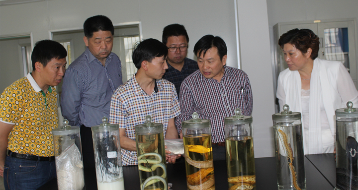 董事長譚群英向領(lǐng)導(dǎo)一行介紹公司在蛇毒防治方面的研究成果