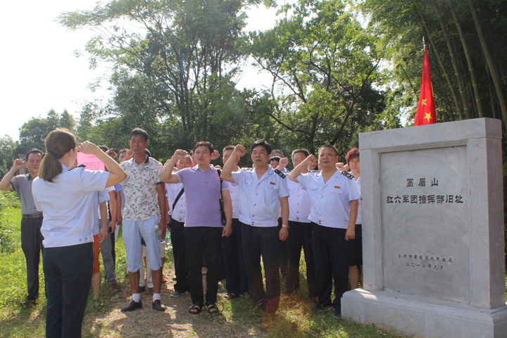 為紀(jì)念中國共產(chǎn)黨成立九十五周年, 2016年6月27日上午,中共零陵區(qū)國稅局機(jī)關(guān)第四支部、中共永州市異蛇科技實(shí)業(yè)有限公司支部共同組織“重走長征路、重溫長征事”活動(dòng)。