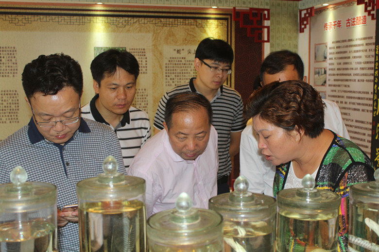 在董事長譚群英的陪同下,秘書長劉明發(fā)一行逐一參觀了公司產(chǎn)品旗艦店、異蛇標(biāo)本陳列室、非物質(zhì)文化釀酒車間、湖南米酒標(biāo)準(zhǔn)化釀造車間、異蛇養(yǎng)殖基地、生物研究所。董事長譚群英向劉明發(fā)一行匯報到:“永州市異蛇科技實業(yè)有限公司是永州的一家老牌企業(yè),二十多年,兢兢業(yè)業(yè),把永州異蛇異蛇科技打造成湖南地區(qū)的林業(yè)、農(nóng)業(yè)龍化企業(yè)、同時柳宗元商標(biāo)也成為中國馳名商標(biāo);公司異蛇王酒、異蛇鞭酒采用的是古法釀泡、現(xiàn)代工藝的釀泡方式,我們的工藝目前獲得了湖南省非物質(zhì)文化遺產(chǎn),這也是政府和消費者對我們企業(yè)最大的認可和鼓勵!同時,公司米酒釀造工藝已成為行業(yè)標(biāo)準(zhǔn)”。參觀結(jié)束后,劉明書一行也對公司寄予了厚望,希望公司能將異蛇產(chǎn)業(yè)做大做強。