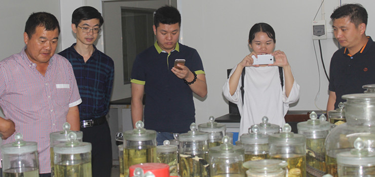 領(lǐng)導(dǎo)、專(zhuān)家參觀蛇類(lèi)標(biāo)本和異蛇酒泡制展示廳