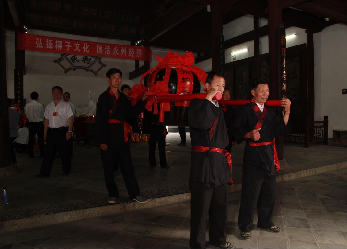 2018年4月4日上午2018年(戊戌)清明祭柳活動(dòng)在零陵區(qū)柳子街柳子廟由永州市柳宗元研究會(huì)、永州市柳宗元紀(jì)念館主辦,永州市異蛇科技實(shí)業(yè)有限公司、湖南科技學(xué)院人文學(xué)院、湖南科技學(xué)院柳宗元研究所、永州偉光匯通古鎮(zhèn)運(yùn)營管理有限公司協(xié)辦,在永州市柳宗元研究學(xué)會(huì)新老會(huì)長:蔡自新先生、翟滿桂教授的率領(lǐng)下,社會(huì)各界人士300余人,匯聚柳宗元紀(jì)念館的正殿,舉行丁酉清明蔡柳活動(dòng),以弘揚(yáng)柳子精神,傳承永州文化。祭柳儀式前,漢服表演隊(duì)、漁鼓隊(duì)、零陵花鼓隊(duì)、舞龍隊(duì)舞獅隊(duì)依次各自進(jìn)行了精彩的表演。上午10點(diǎn),清明祭柳活動(dòng)正式開始。祭祀活動(dòng)上,參與祭拜的人伴著悠揚(yáng)的古樂步入大殿,在柳子塑像前三鞠躬,獻(xiàn)上酒果,敬香,并恭讀祭文,湖南科技學(xué)院、柳子街小學(xué)學(xué)生在祭柳活動(dòng)上誦讀柳宗元詩文,隆重紀(jì)念這位唐代著名思想家、文學(xué)家。柳宗元曾在零陵謫居10年 ,他體恤民情,寄情山水,在困厄中崛起,于孤獨(dú)中潛行,在寂寞中堅(jiān)守,相繼創(chuàng)作了享譽(yù)古今的《江雪》《漁翁》《愚溪詩序》《捕蛇者說》《封建論》《天論》《天對》《永州八記》等曠世名作,成為唐代著名的文學(xué)家、哲學(xué)家、思想家。